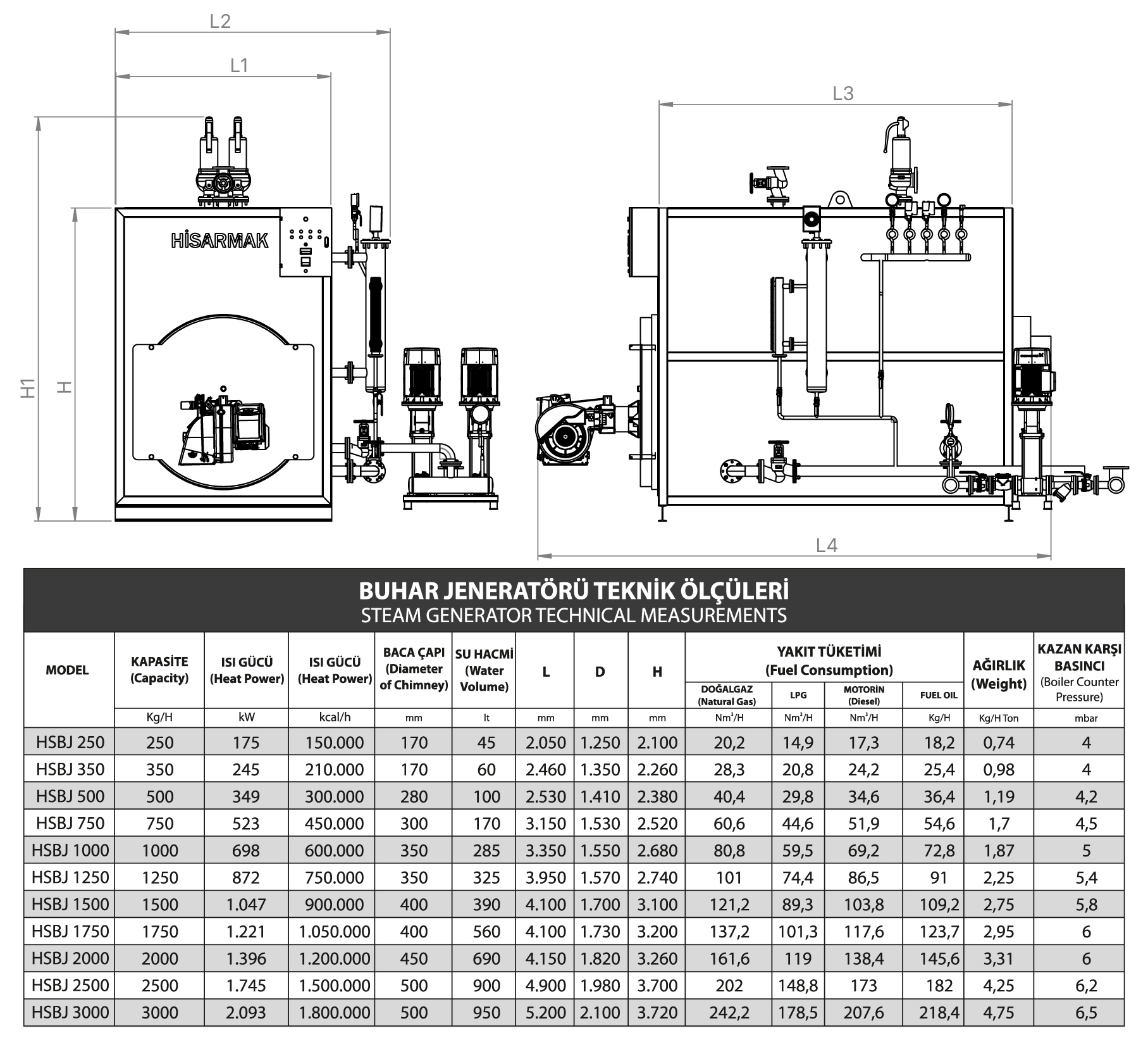Buhar Jeneratörü; kullanım yönünden kolaylık sağlayan, buhar ihtiyaçlarını hızlı bir şekilde karşılayan, farklı yakıt tipleri ile çalışabilen, az yer işgal eden bir yapıya sahiptir. Gaz ve Sıvı yakıtlı olan buhar jeneratörleri özellikleri aşağıda verilmiştir.